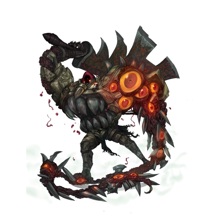 The remains of the last foolish creature who tried to pry the door open, a cave sickle, lay dead at the warden's feet. It had struggled valiantly, thinking it could pry its frame through the small crack in the door. The warden had stood so still that perhaps the cave sickle didn’t even know it was alive, and not some kind of statue carved from stone. It must have been surprised when it died.