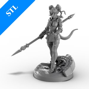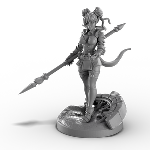 Trouble wrapped in tiger-stripes. Aiko is Elenia City's pawnshop proprietor turned racing ace. She's equal parts charm and chip on her shoulder. She's a rival pilot, a fence with history, or the trusted face who can get too close. Quick with a flirtatious smile behind the bar or a deal that's just too good to refuse. But once you're alone, you discover the weapon she's carrying isn't a conversation piece.